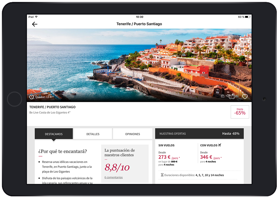 Las ventas son limitadas y exclusivamente reservadas a los socios, lo que nos permite proponer ofertas más atractivas que otras agencias de viajes.
