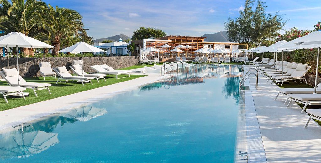 Situado en Playa Blanca, este complejo solo adultos destaca por sus amplias suites con terraza y su régimen todo incluido completo (desayuno, comida, cena y bebidas locales). A pocos minutos de las playas de Papagayo, ofrece spa, piscinas climatizadas y un ambiente tranquilo perfecto para desconectar. Su ubicación estratégica permite explorar el sur de la isla con comodidad.