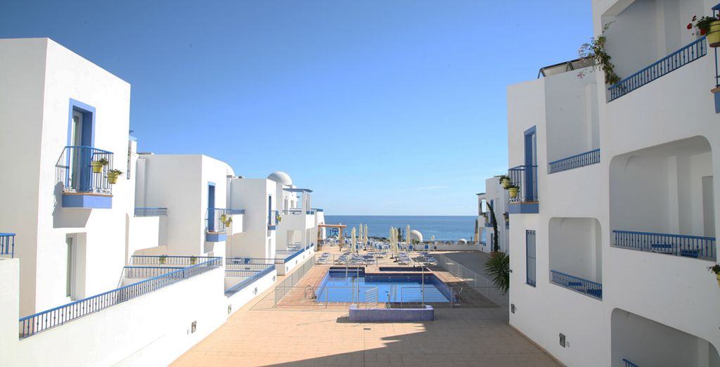 Apartamentos situados cerca de la playa, con amplias terrazas y servicios pensados para estancias veraniegas prolongadas. Cada unidad cuenta con cocina equipada, salón independiente y vistas al mar o a los jardines. Ideal para parejas o grupos de amigos que valoran la independencia de un apartamento con los servicios de un complejo hotelero: piscina comunitaria, zonas ajardinadas y proximidad a restaurantes y ocio nocturno de Mojácar Playa.