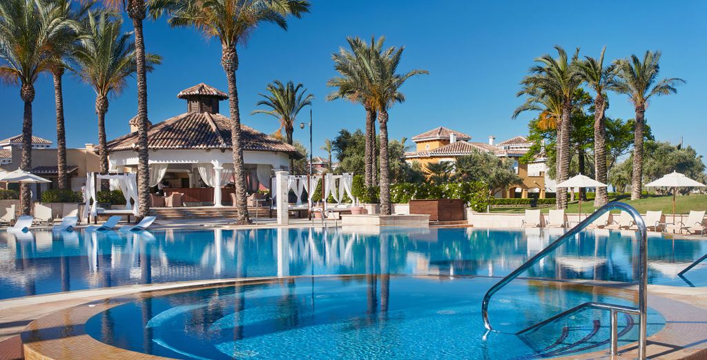 Este resort de cinco estrellas destaca por su spa de alto nivel, con circuitos de hidroterapia, cabinas de tratamiento y zonas de relajación. Rodeado de un campo de golf de 18 hoyos, ofrece múltiples piscinas, restaurantes de cocina mediterránea y habitaciones elegantes con terraza. Es el destino perfecto para quienes buscan una experiencia premium que combine deporte, gastronomía y bienestar en un entorno exclusivo junto al Mar Menor. Las instalaciones deportivas de primera categoría permiten practicar golf bajo el sol mediterráneo, mientras las áreas de descanso invitan a disfrutar de la calma y el lujo en cada detalle.