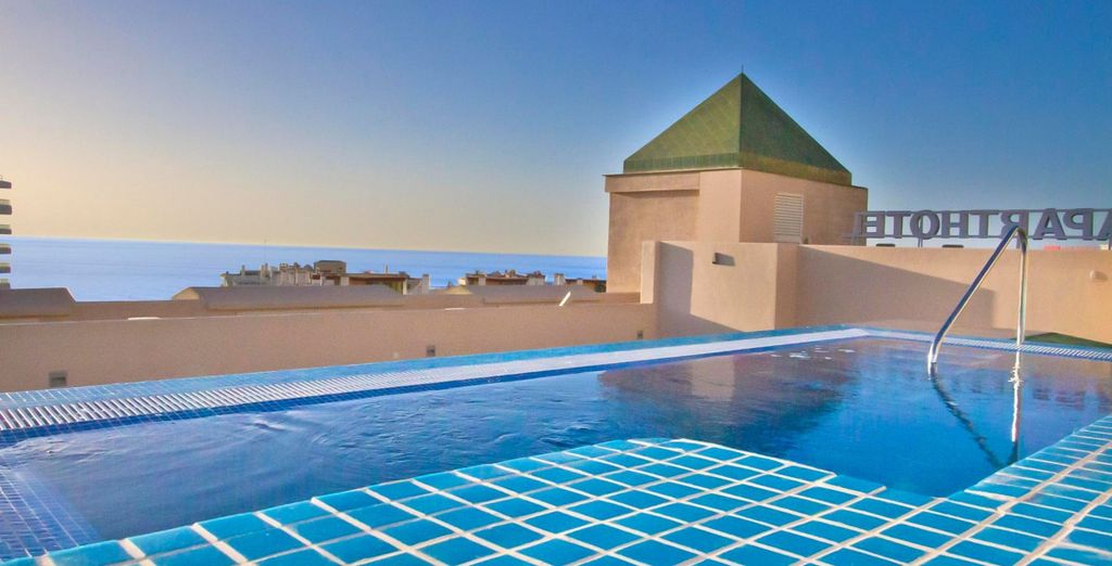 Lo que nos encanta: la zona de piscina reservada para adultos, las vistas al mar desde la terraza y el acceso directo a una de las mejores playas de Torremolinos.