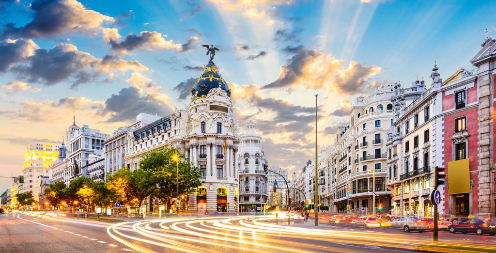 El Vincci The Mint 4* se encuentra en plena Gran Vía, el corazón vibrante de Madrid. Su diseño vanguardista y su famosa terraza The Mint Roof lo convierten en una opción perfecta para parejas que desean combinar cultura, ocio nocturno y gastronomía. El hotel ofrece desayuno incluido en determinados regímenes y habitaciones modernas con todas las comodidades. Su ubicación permite acceder a pie a teatros, tiendas, restaurantes y la vida nocturna madrileña.