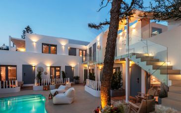 Lujoso hotel de 5 estrellas en la isla de Mykonos, solo para adultos y con un romántico spa para relajarse. En él podrás escoger entre una habitación espaciosa con balcón o un bungalow con jacuzzi privado, pero al aire libre, en medio de la naturaleza.