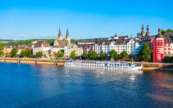 Pensión completa a bordo. A mediodía llegaremos a Boppard, que ofrece una variedad de atracciones turísticas que resaltan su belleza natural y rica historia, como: Castillo de Sterrenberg y Castillo de Liebenstein, Iglesia de San Severino o Bahía de Boppard.