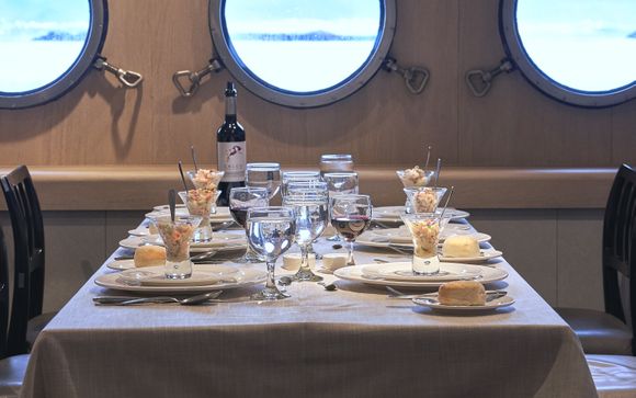 Esta experiencia envolvente, que combina naturaleza, gastronomía y actividades invernales, te proporcionará recuerdos inolvidables antes de tu regreso a la ciudad. Tu chófer te llevará al puerto para embarcar a las 18.00 h. Cóctel de bienvenida y presentación del capitán y la tripulación.