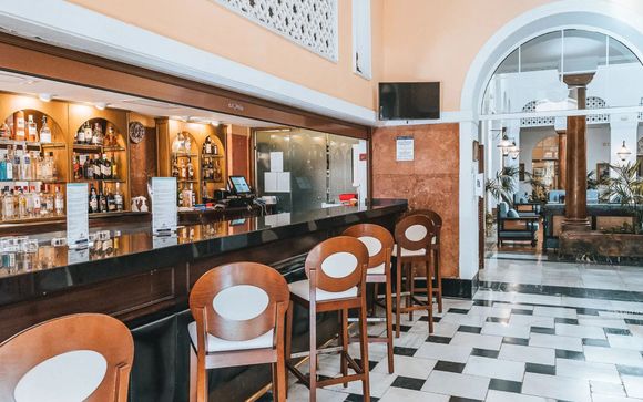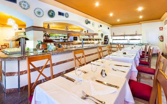 Visita el restaurante Andalucía, con servicio de buffet o menú (según ocupación), para deleitarte con lo mejor de la cocina nacional e internacional, o el restaurante Reina Cristina, un restaurante a la carta con carnes y pescados al grill, así como otras recetas gastronómicas locales e internacionales. El Bar Patio será tu rincón favorito para degustar snaks, cócteles, licores y refrescos de todo tipo. Además, una vez a la semana, podrás disfrutar de música en vivo.