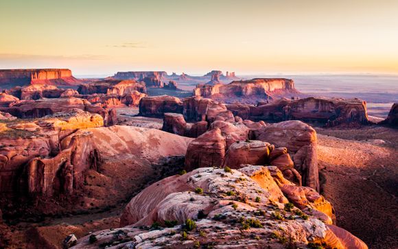 Visita esta imponente región donde se han rodado muchas películas del Oeste. Esta llanura desértica, de 40 km de largo y 16 de ancho, rebosa de gigantescas estructuras monolíticas de arenisca que se elevan por encima del valle.
