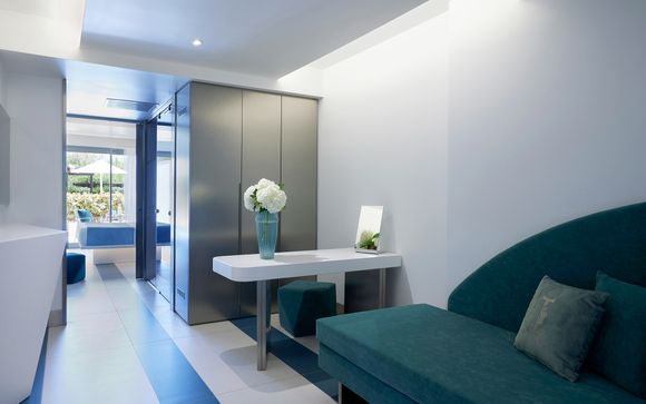 Entra en esta habitación Gold doble, de diseño contemporáneo y colores puros, y disfruta de las vistas al mar mientras descansas sin ninguna preocupación.