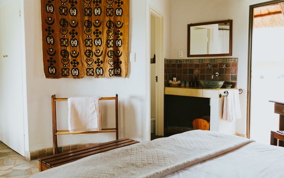 Para esas sensuales noches africanas, dirígete al bar y salón al aire libre, donde podrás disfrutar de una vista impresionante del campo y del pozo de agua.