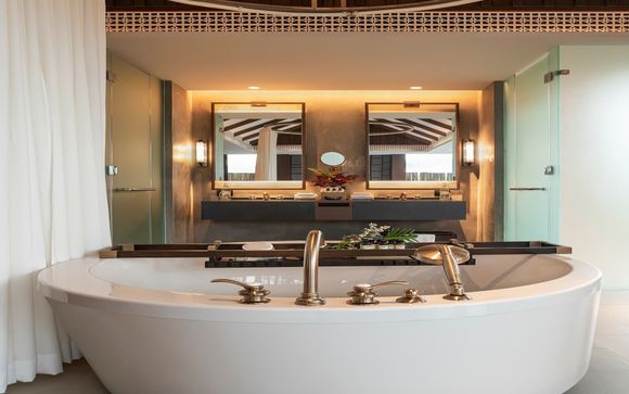 Para un momento de puro placer, tu Villa de un dormitorio con piscina te permite darte un baño, zambullirte en la piscina de 41 m² o no levantarte de la cama. Un lugar para relajarte y recargar las pilas en total intimidad, a tiro de piedra de la playa.